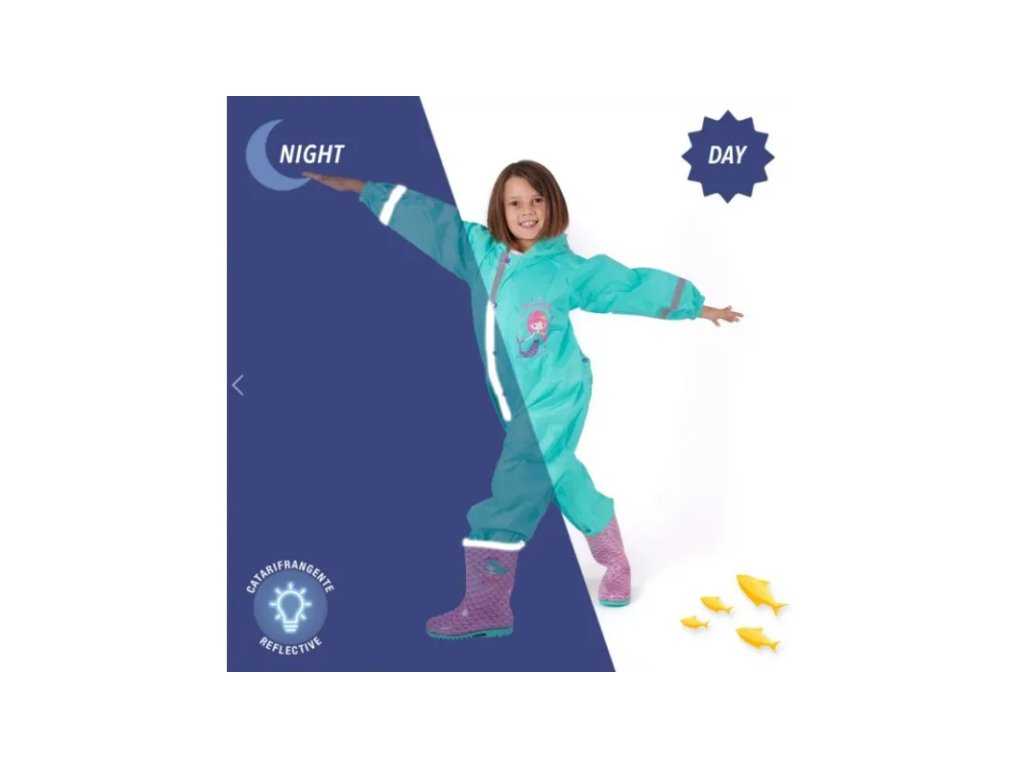 Oblečte své děťátko v deštivý den a nechte ho klidně běhat přes louže! Díky overalu Perletti Cool Kids Line zůstane vaše dítě v suchu. Zip a dvouřadé zapínání na cvočky zabraňuje pronikání vody a vaše dítě si může bezpečně hrát i díky reflexním proužkům na rukávech a vpředu.• větruvzdorný, nepromokavý a prodyšný