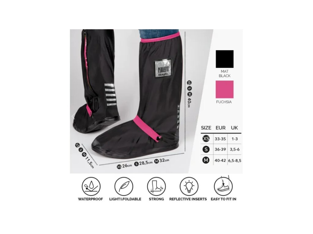Projmutý střih chrání vaši obuv před skvrnami od oleje a bláta, deště a sněhu. Snadno se myje, skládá a skladuje v obalu. Zip na boku a barevná gumička umožňují rychlé a snadné nasazení. Reflexní bezpečnostní vložky na bocích a patách vám umožní být viditelný i v noci. Hrubá, odolná, flexibilní a protiskluzová podrážka. Zesílená pata a špička.