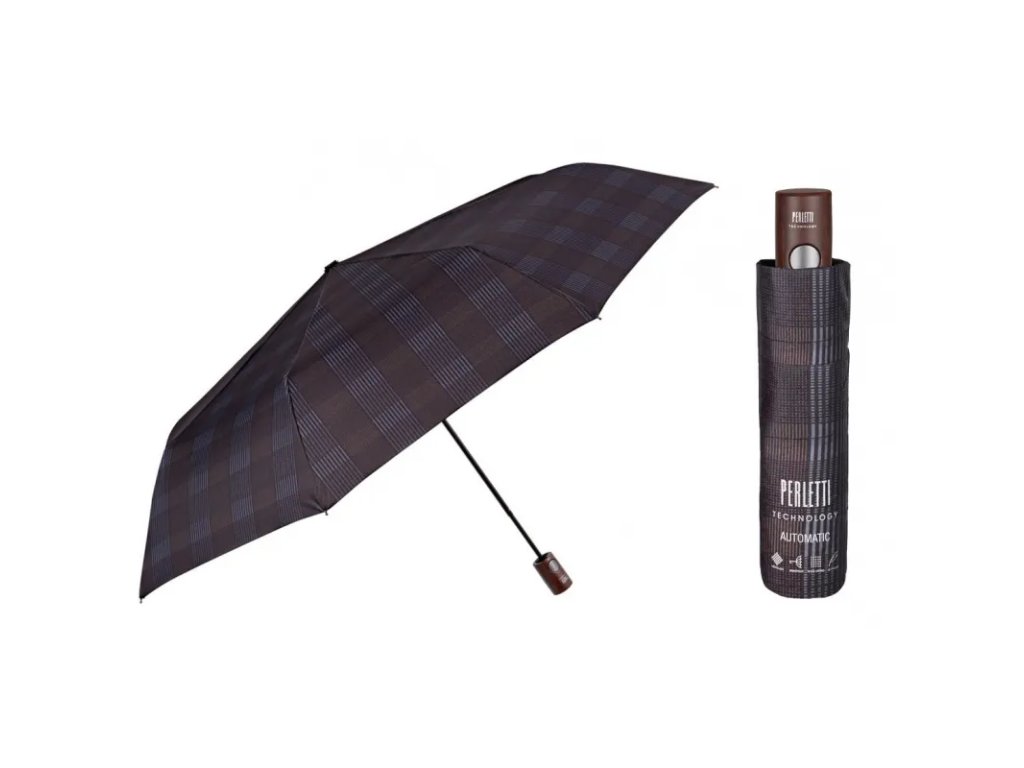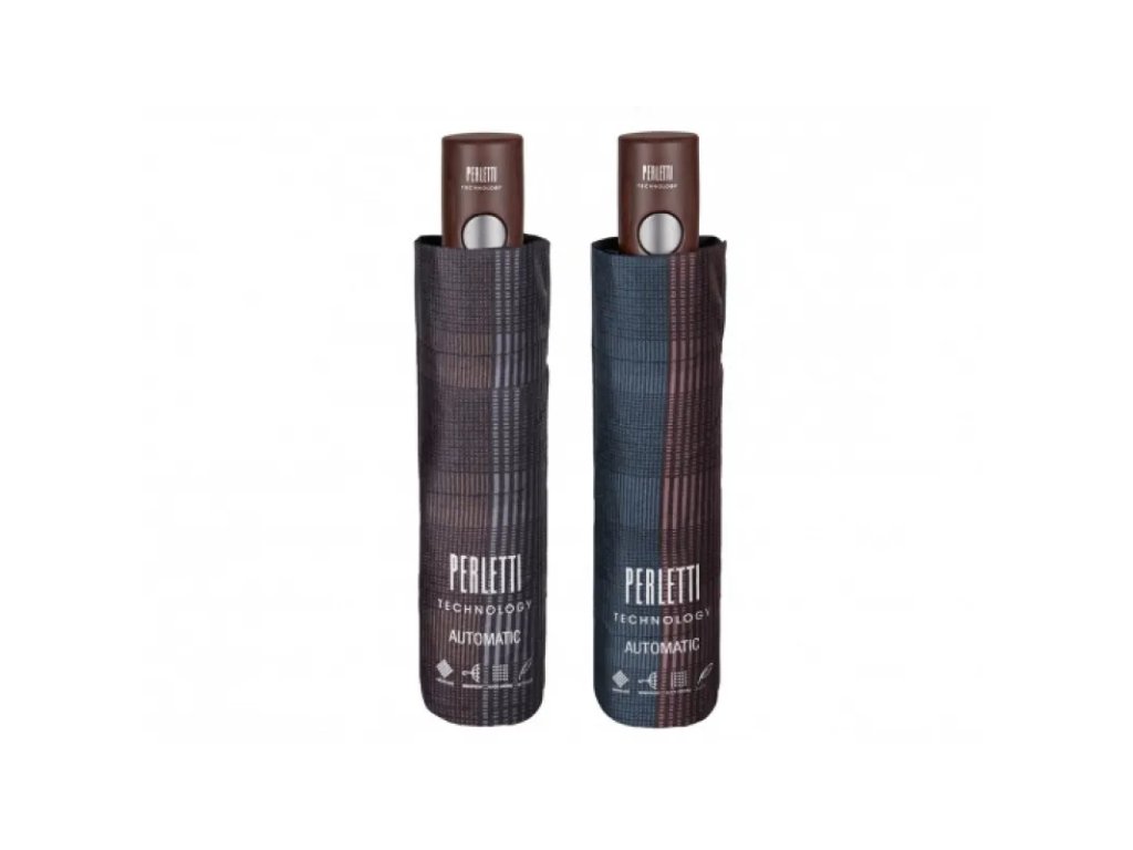 PERLETTI Pánský automatický deštník TIME Scozzese / šedo-hnědý, 21732