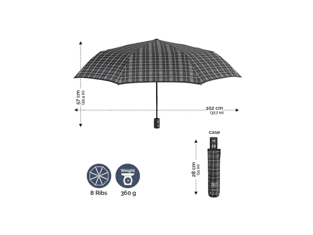 Luxusní pánský deštník s elegantní plastovou rukojetí. Deštník má automatické otevírání a konstrukci ze sklolaminátových vláken, což deštníku zajišťuje větruodolnost. Průměr deštníku je 104cm. Nadčasová elegance pro skutečné muže. Zboží máme skladem, připraveno k odeslání.• automatické otevírání