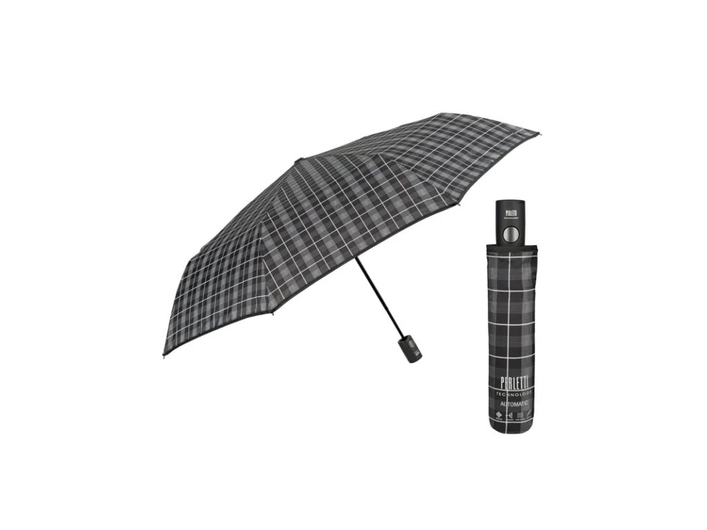 PERLETTI Pánský automatický deštník TIME / šedý proužek, 21712