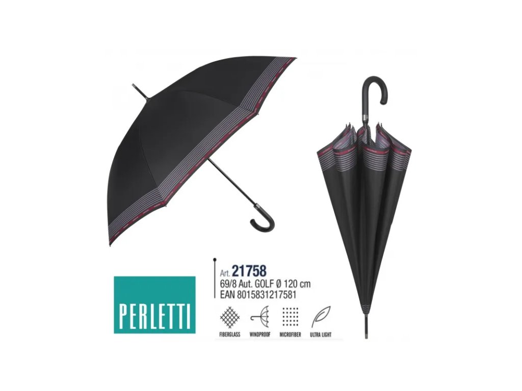 PERLETTI Technology, Pánský holový deštník/černá, 21758