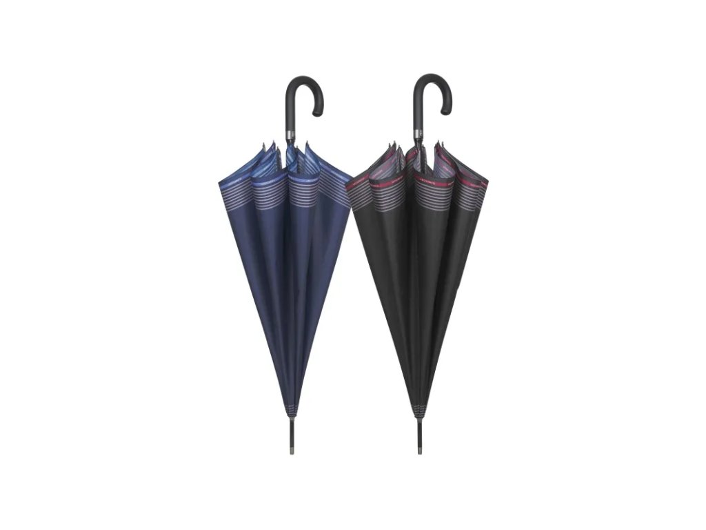 Klasický a elegantní deštník pro muže, kteří hledají vysoce kvalitní doplněk, aniž by obětovali styl. Tento golfový deštník je k dispozici ve dvou barvách: tmavě modré a černé. Tkanina je pevně tkaná a speciální vodoodpudivá pryskyřičná vrstva zajišťuje mimořádně rychlé schnutí deštníku. Konstrukce odolná proti větru s tyčí a inovativními tyčemi ze skelných vláken, díky kterým je odolný i vůči nejsilnějším poryvům. Automatické otevírání. Perfektní dárek pro každou příležitost• větruodolná konstrukce ze sklolaminátového materiálu