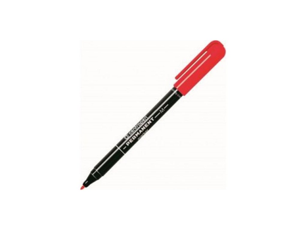 Popisovač Centropen 2846 červené barvy. Válcový hrot s šířkou stopy 1 mm. Univerzální permanentní popisovač, píše na většinu povrchů. Vhodný k psaní na papír, pryž, kůži, plast, beton, kámen, dřevo, film, fólie, kov, sklo, porcelán. Permanentní, otěruvzdorný inkoust na alkoholové bázi. Odolný vodě a teplotě do 100 °C.Doplňkové parametry