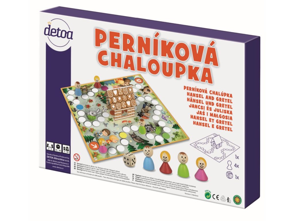 Perníková chaloupka je jednoduchá desková hra pro malé i velké hráče, plná zábavy a dobrodružství. Inspirovaná klasickou pohádkou o Jeníčkovi a Mařence. Cesta lesem je o plnění nejrůznějších úkolů a překážek. Malebná hrací deska je doplněna o 3D chaloupku. Součástí balení jsou dva Jeníčcci a dvě Mařenky. Vhodná pro 2 - 4 hráče od 3 let.Doplňkové parametry