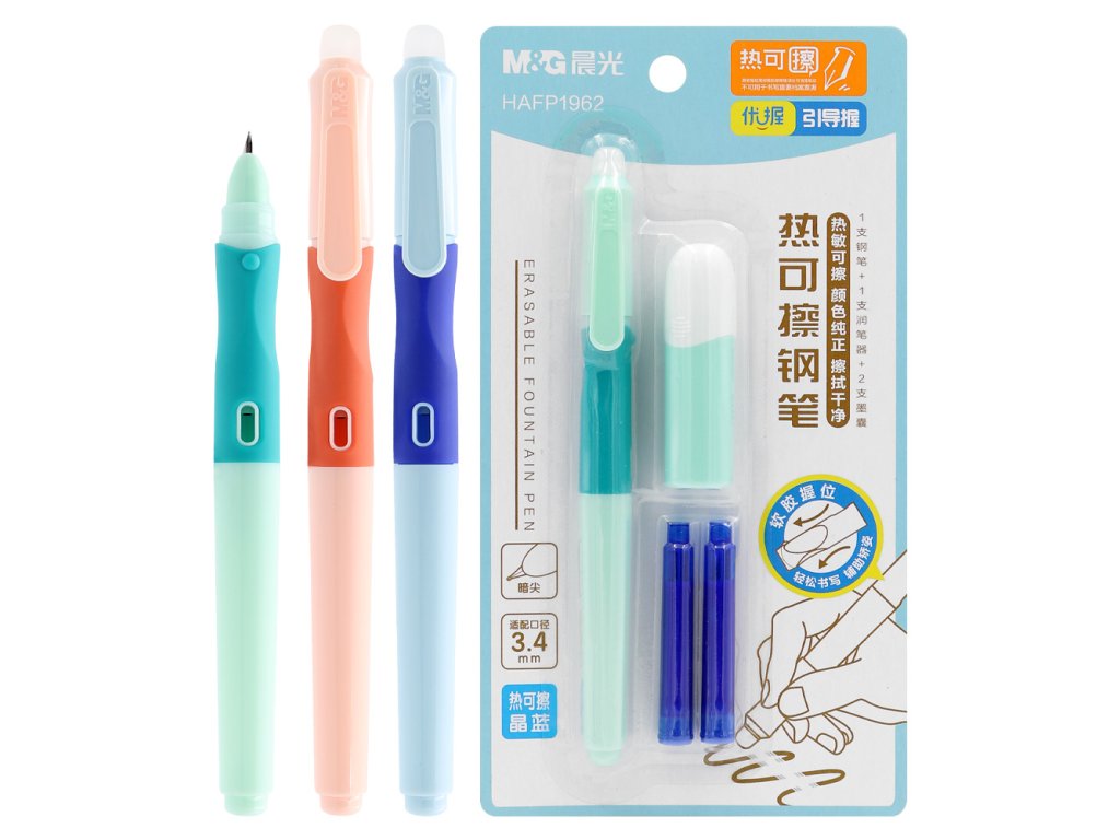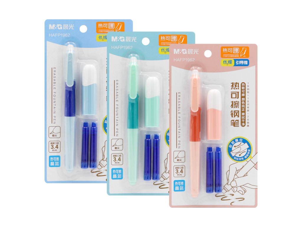 Pero bombičkové, gumovací atrament M&G U-Grip + 2 bombičky (3 barvy)