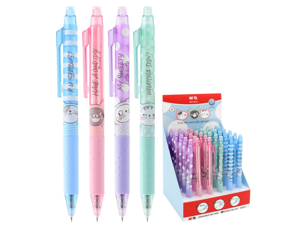 Pero gelové /gumovací M&G iErase So Many Cats Pastel - modrá náplň (mix /cena 1ks)