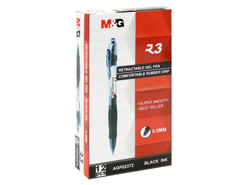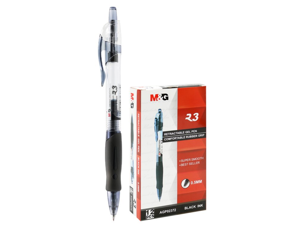Gelové pero s transparentním plastovým tělem a velkoobjemovou náplní.