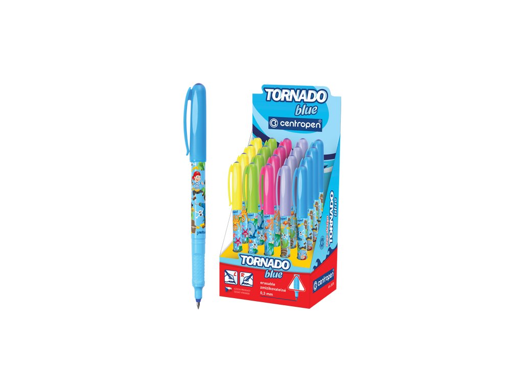 Oblíbené kuličkové pero Tornado s trojúhelníkovou úchopovou částí s masážními body, s tenkou rovnoměrnou stopou šířky 0.3 mm, která se dá vyzmizíkovat, inkoustová náplň modré barvy. Tělo pera je z kvalitního plastu, dodáváno v 5 barevných kombinacích. PerDoplňkové parametry