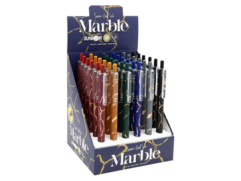 Pero kuličkové JUNIOR Marble, hrot 1,0 mm, Semi-Gel modrá náplň (mix barev)