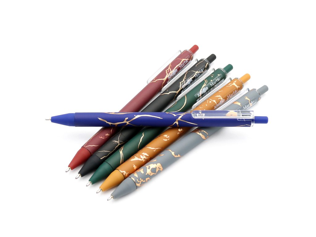 Kuličkové pero s plastovým tělem příjemným na dotek v mramorovém designu (6 barev v balení).