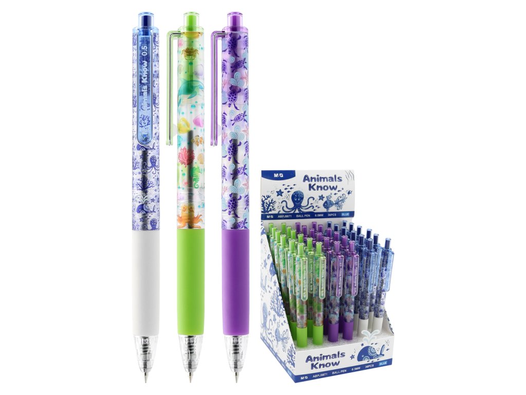 Pero kuličkové M&G Animals Know 0,5 mm, modrá náplň (3 designy)
