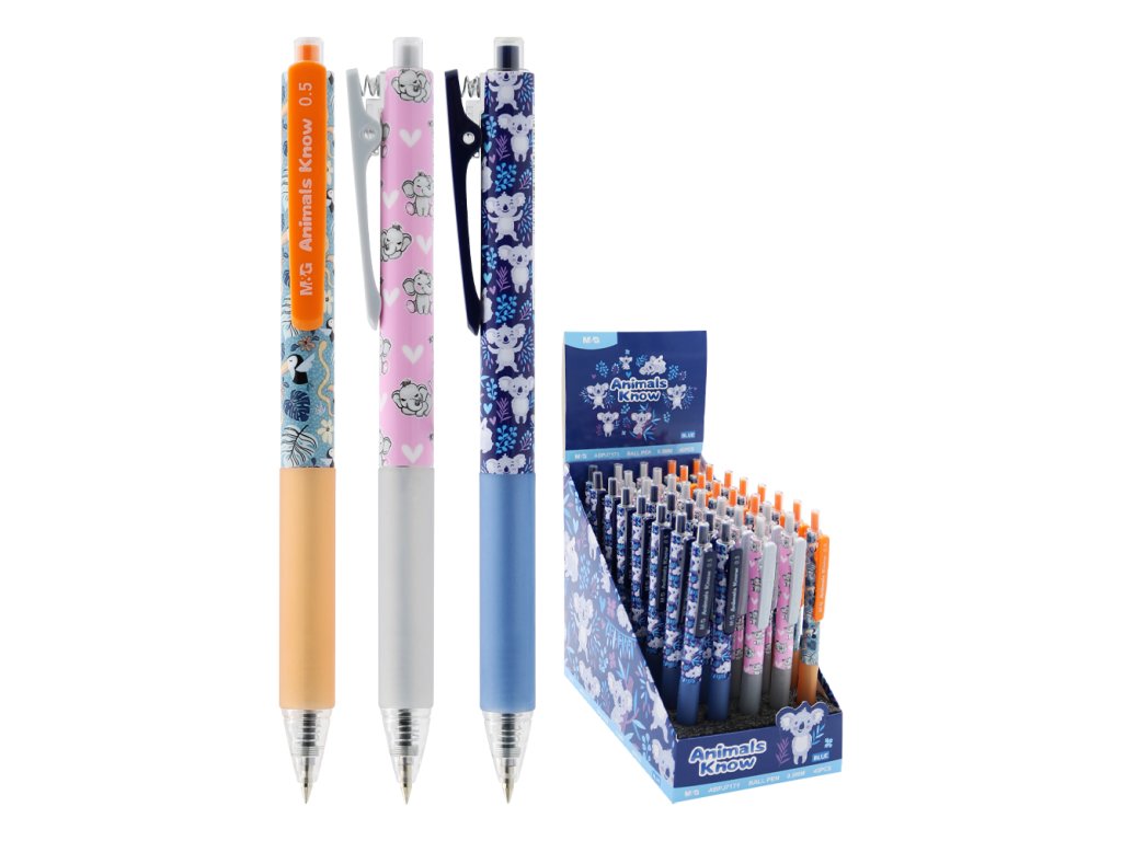 Pero kuličkové M&G Animals Know 0,5mm - modré, mix