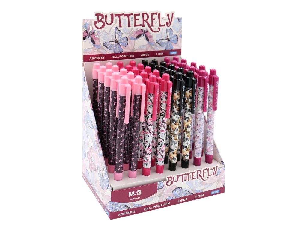 Pero kuličkové M&G Butterfly Collection 0,7 mm, modré (4 dizajny v balení)