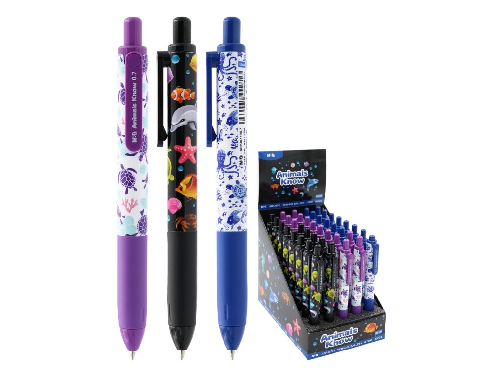 Pero kuličkové M&G Semi-Gel Animals Know 0,7 mm (3 dizajny v balení)