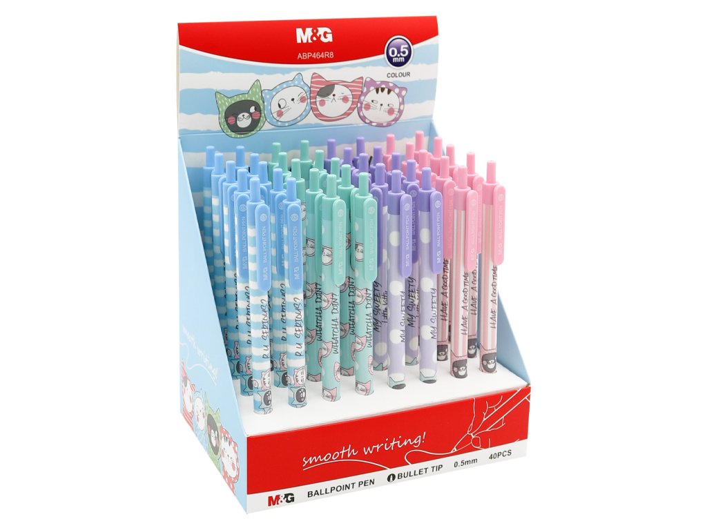 Pero kuličkové M&G So Many Cats Pastel, hrot 0,5 mm (4 designy), černá náplň