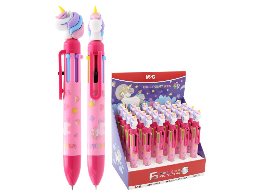 6 barevné kuličkové pero pro děti z kolekce Unicorn.
