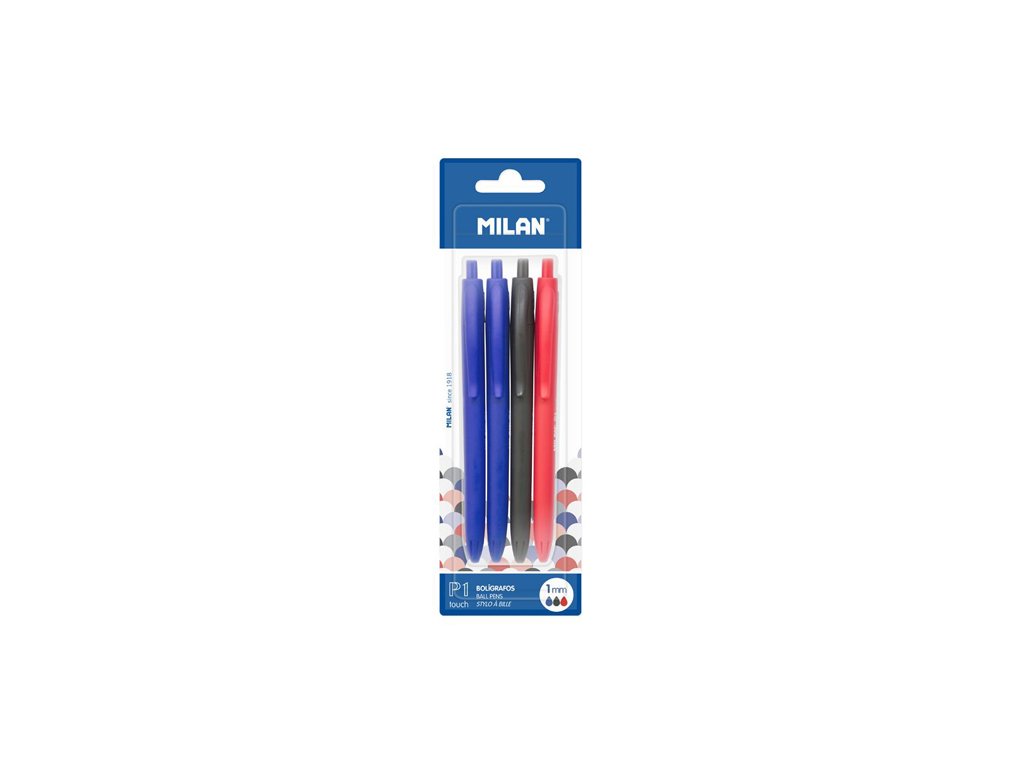 Pero kuličkové MILAN P1 Touch 1,0 mm - sada 2 x modré + černé + červené pero