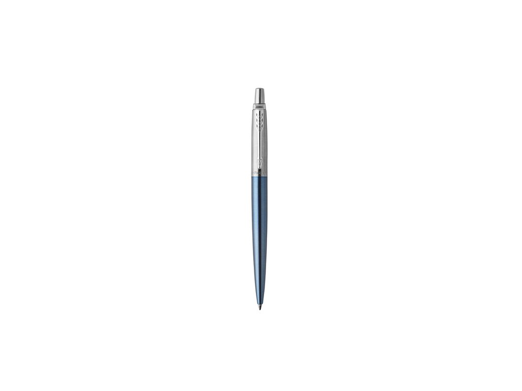 Pero kuličkové PARKER Jotter Waterloo Blue CT. Parker Jotter je designérskou klasikou a důvěrně známým modelovou řadou, oceňovaným predovšetkýn pro svou kvalitu, spolehlivost a příznivý poměr ceny a výkonu. Lakované tělo z broušené nerez oceli a vrchní část z broušené nerez oceli. V kombinaci s doplňky z nerez oceli pokovenými chromem, s leštěnou úpravou.Doplňkové parametry