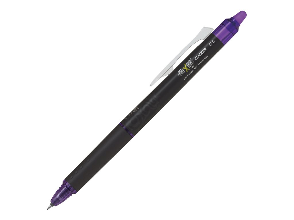 Elegantní design pera PILOT FriXion - barva fialová. Je přepisovatelný a napsaný text lze vymazat a znovu přepsat na tomtéž místě. Text vymažete třením plastového zakončení rolleru na papír. Roller má wolframový karbidový hrot a pogumovaný úchyt pro pohodlné psaní. Tloušťka písma je 0,25 mm a průměr kuličky 0,5 mm.Doplňkové parametry