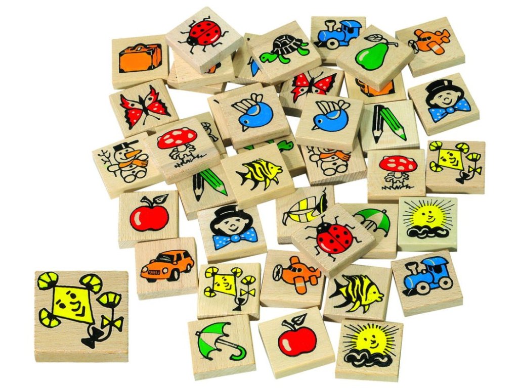 Dřevěné pexeso s barevnými obrázky pro procvičení soustředění a paměti. Hra obsahuje 40 kusů o velikosti 40 x 40 x 10 mm. Baleno v krabici z tvrdého papíru. Nevhodné pro děti do 3 let. Obsahuje malé části. Výrobek je zdravotně nezávadný.Doplňkové parametry