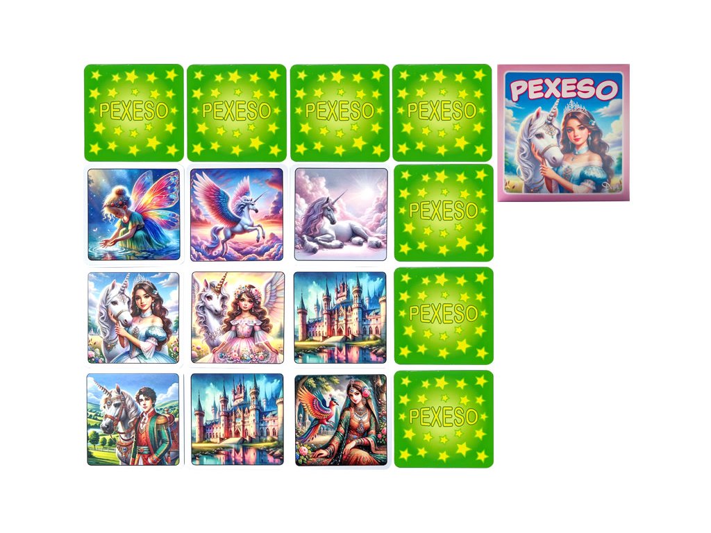 Pexeso je hra zaměřená na rozvoj koncentace, paměti, bystrosti a trpělivosti. Cílem hráčů je najít co nejvíce stejných dvojic. Pexeso je s motivem kouzelných jednorožců. Materiál papír.Doplňkové parametry