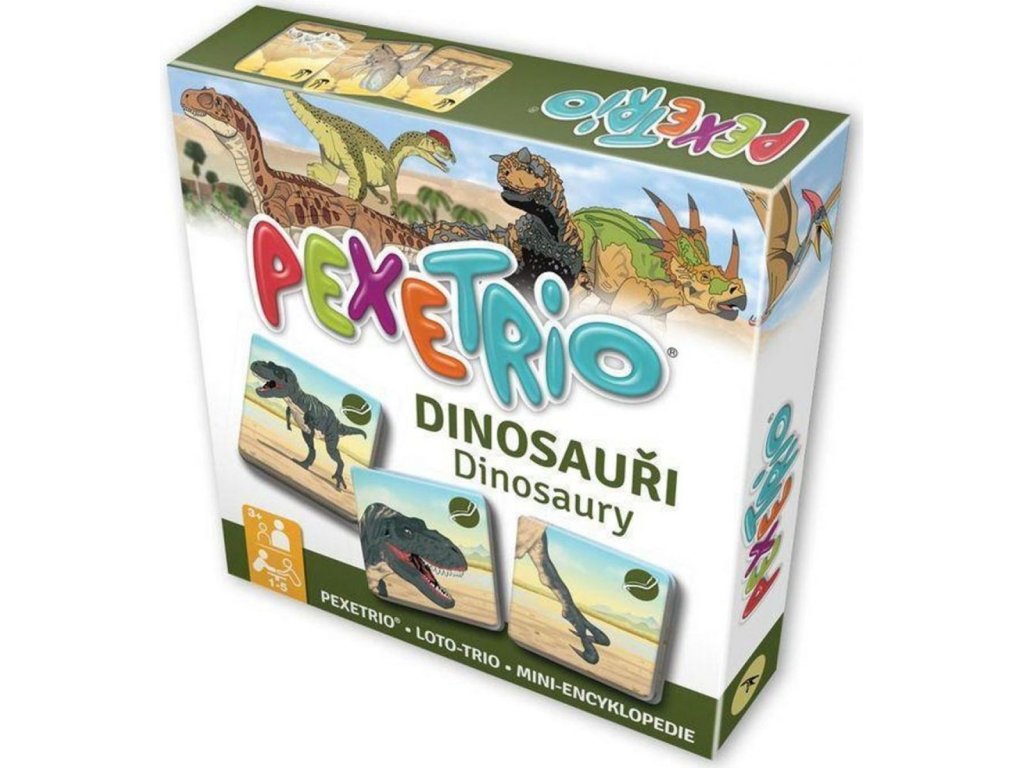 Pexetrio DINOSAUŘI je didaktická a zábavná hra, ve které se naučíte pojmenovat různé dinosaury a rozlišovat je pomocí jejich typických znaků. Pexetrio DINOSAUŘI je zábavná hra inspirovaná pexesem, která děti zároveň i vzdělává. Děti se naučí poznávat různé dinosaury a rozlišovat je pomocí jejich typických znaků podle hesla „škola hrou“. Kromě toho, že si děti osvojí dinosaury zábavným způsobem, hra také napomáhá rozvíjet jejich logické myšlení a trénovat paměť hledáním trojice kartiček s vyobrazením různých dinosaurů a jejich typických znaků. Součástí hry jsou nejen odolné kartičky, ale také hrací arch pro doplňkové hry LOTO-TRIO, které nabízí další herní varianty hry a mini-encyklopediie se základními informacemi k tématu.Doplňkové parametry