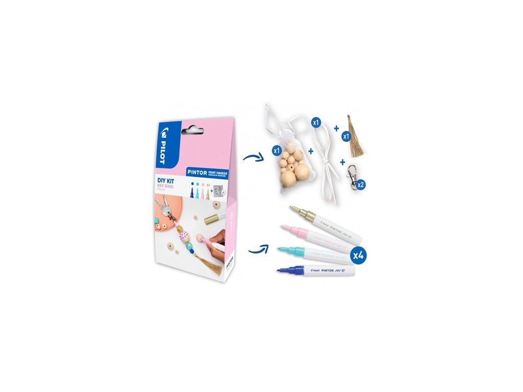 Sada obsahuje 4 x akrylové popisovače Pilot Pintor: modrý, pastelový zelený, pastelový růžový, zlatý 2 x sady pro vytvoření přívěsku na klíče dle vaší fantazie - Šířka stopy: 0,7 mm - Průměr hrotu: 2,3 mmDoplňkové parametry