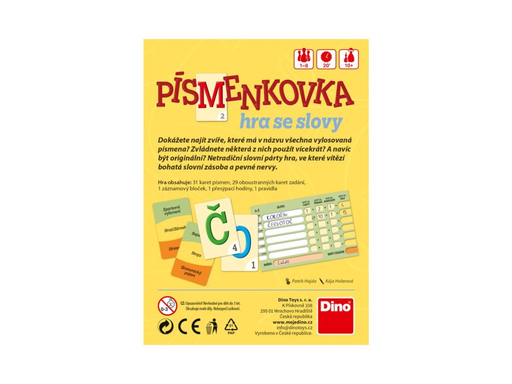 Dokážete najít zvíře, které má v názvu všech šest vylosovaných písmen? Netradiční slovní hra pro 1 až 8 hráčů od 10 let , ve které vítězí pevné nervy a bohatá slovní zásoba.Doplňkové parametry