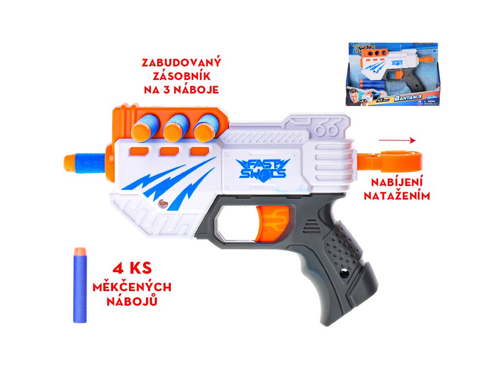 Pistole 20cm se zásobníkem pěnových nábojů 4ks v krabičce
