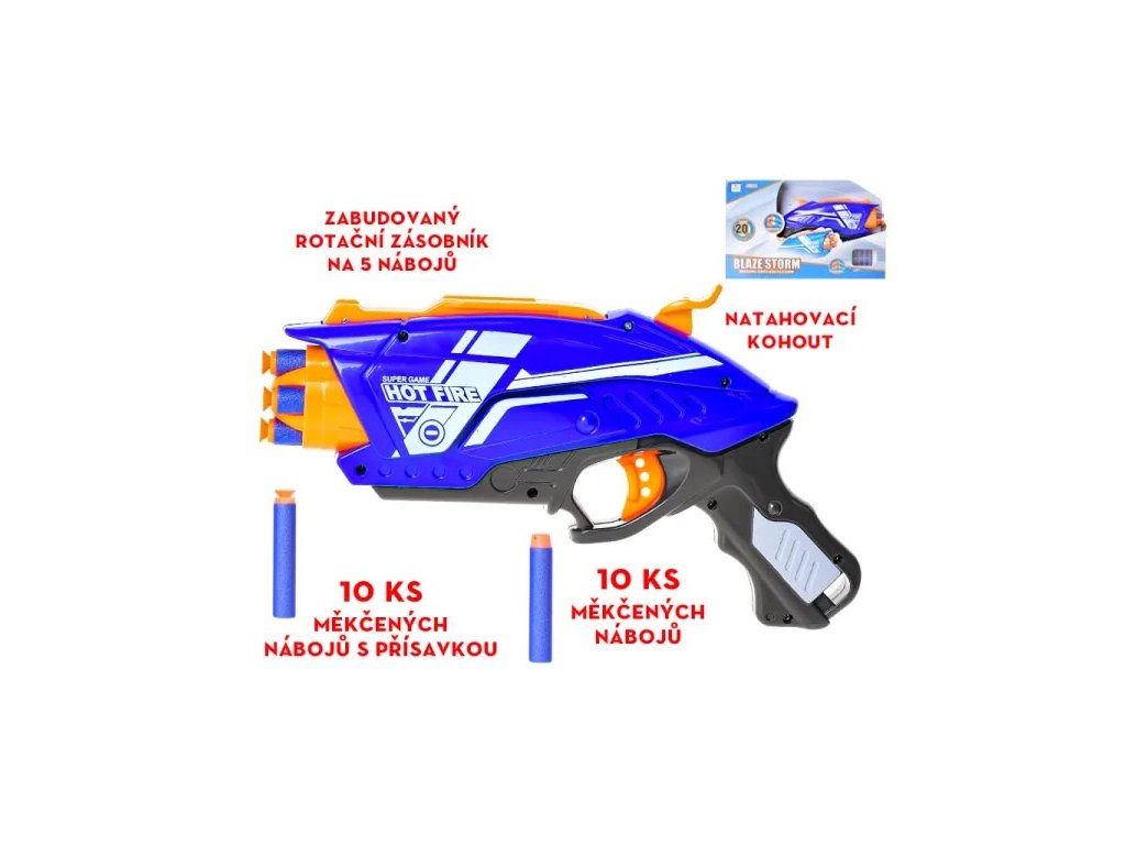 Velikost 28 cm Pistole s rotačním zásobníkem na 5 pěnových nábojů. Nevhodné pro děti do 8 let.Doplňkové parametry
