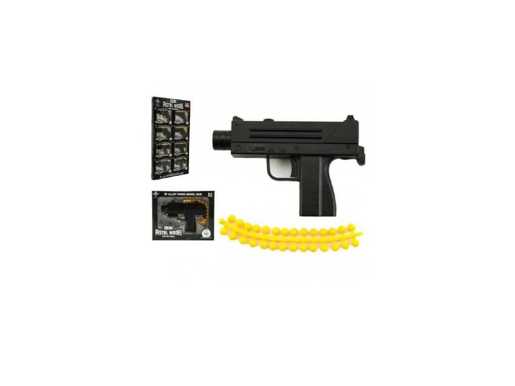 Krátká ruční zbraň pro malých představitelů práva. Lehká ruční pistole střílí měkkými kuličkami. Je velmi pěkně vyrobena.Chlapci - a to nejen ti malí - se rádi hrají na střílečky apod. s touto pistolí bude jejich hra velmi zábavná. Zbraň měří 11 cm. Vhodné pro děti od 8 let.Doplňkové parametry