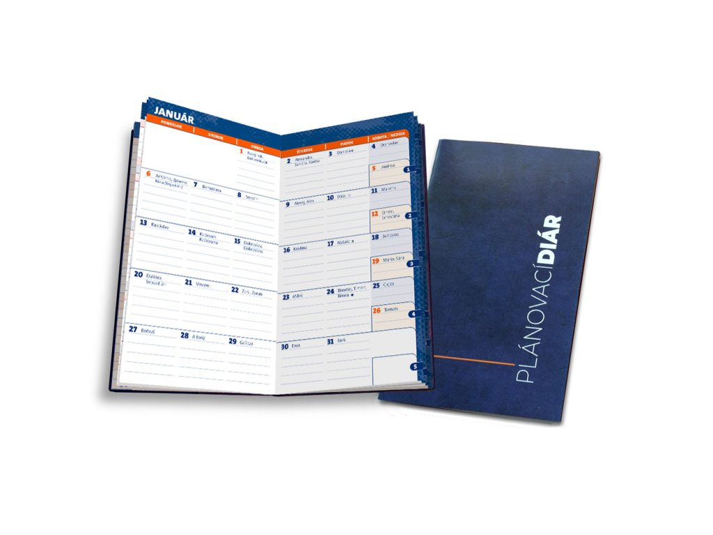 Mesačný plánovací diár obsahuje 48 strán v slovenskom jazyku.