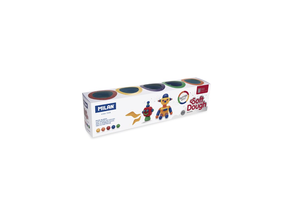 Plastelína MILAN Soft Dough glitrové barvy - sada 5 ks