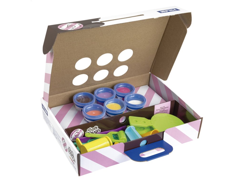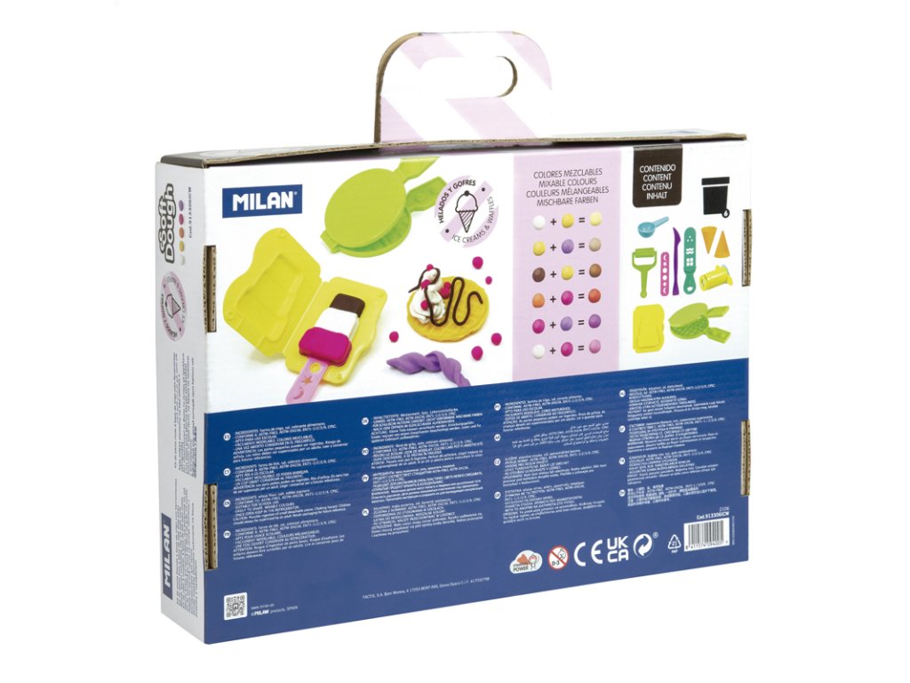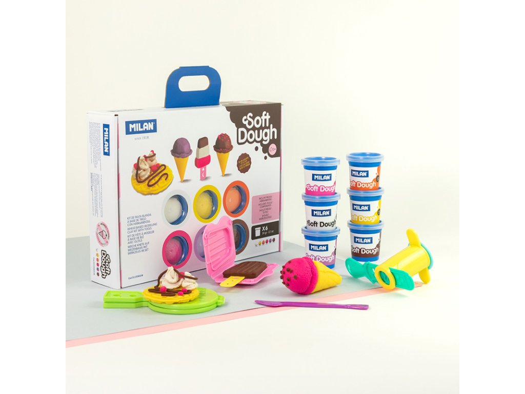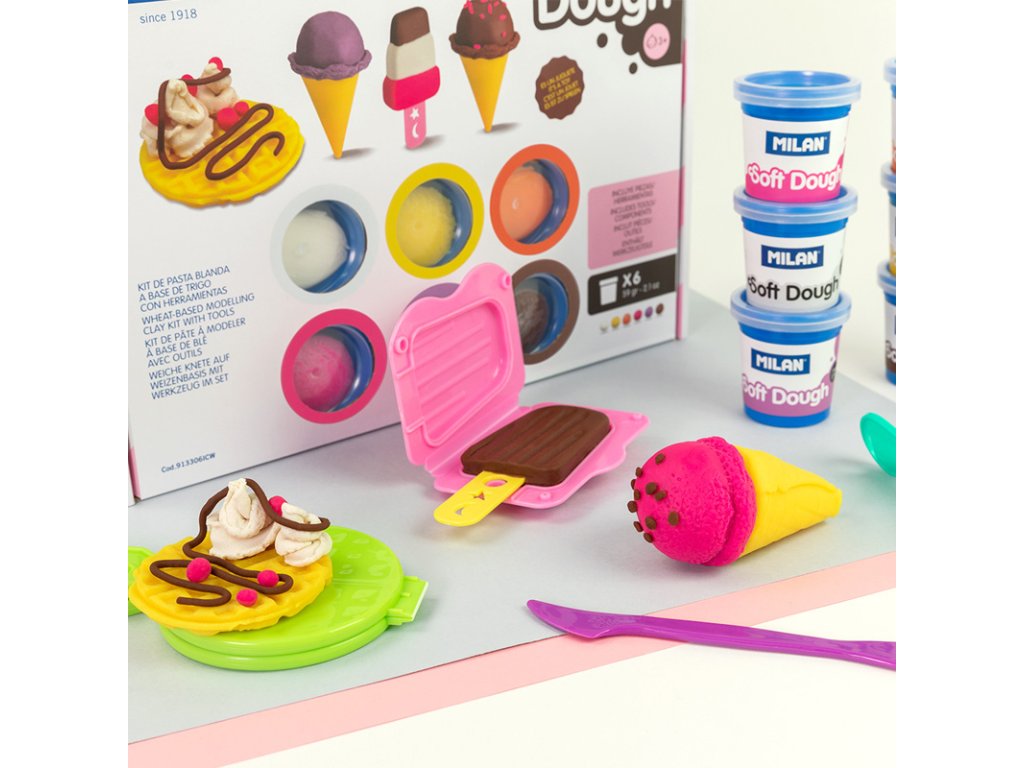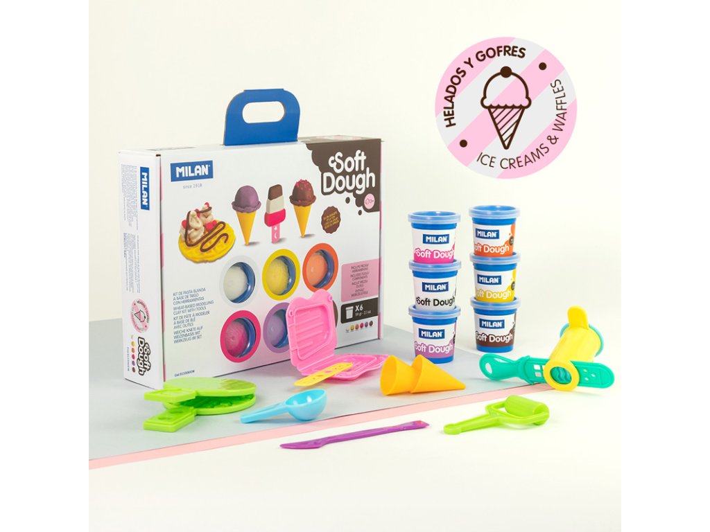 Plastelína MILAN Soft Dough sada 6 barev + nástroje "Ice creams & Waffles"