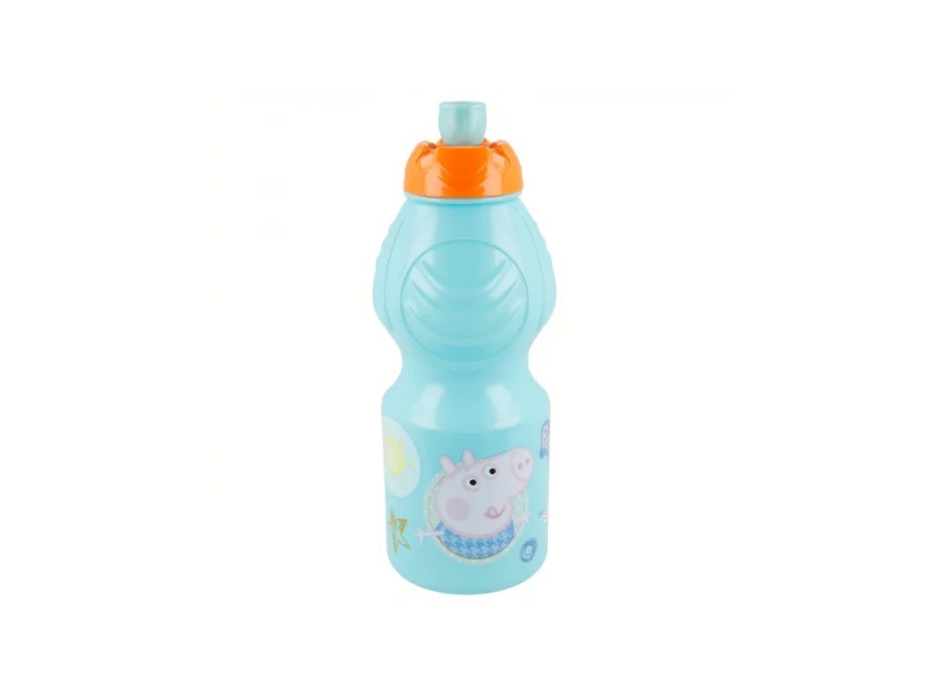 Jednoduchá plastová láhev na pití s motivem PEPPA PIG potěší všechny školáky i výletníky. • lehce uzavíratelná a přenosná, s bezpečným vysouvacím uzávěrem • láhev má široké hrdlo, lze snadno čistit • plastová, vhodná pro děti od 3 let • objem: 400 ml, výška 19cm, BPA free• lehce uzavíratelná a přenosná, s bezpečným vysouvacím uzávěrem