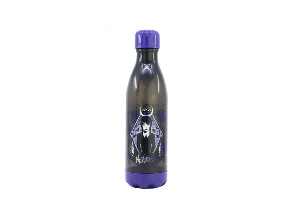 Lehoučká, elegantní plastová láhev na pití s motivem Wednesday potěší všechny školáky, výletníky.• vhodná do školy, na výlety, během cestování atp.