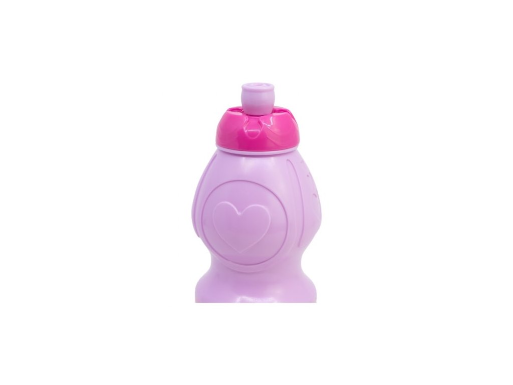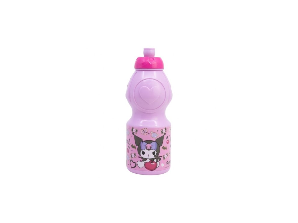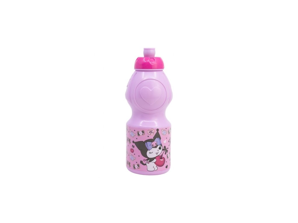 Opakovaně použitelná plastová dětská láhev s motivem Kuromi s ergonomickým tvarem, víčkem proti odkapávání a protiskluzovým páskem. Výška 18cm, šířka 6,5cm, hmotnost 52g.Doplňkové parametry