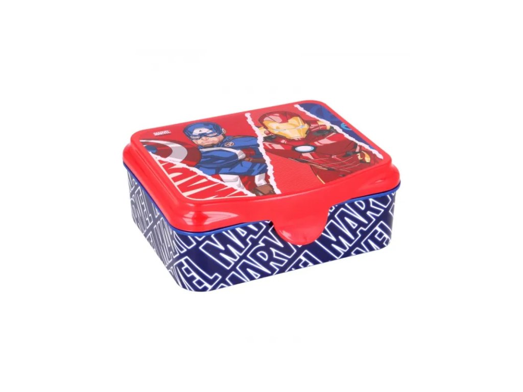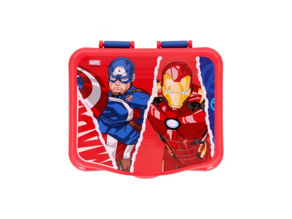 Plastový box AVENGERS pro uchovávání jídla do školy nebo pro volný čas. • plastový, vhodný pro děti od tří let • rozměry boxu jsou: šířka 15cm x hloubka 13,5cm x výška 5,7cm, objem 800ml • s potiskem loga, jednoduchý a bezpečný uzávěr• plastový, vhodný pro děti od tří let