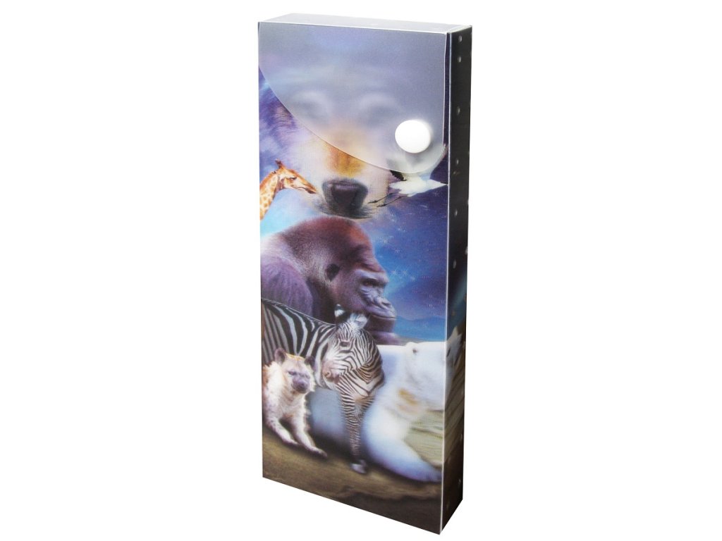 Plastový penál o rozměrech 20 cm x 7 cm x 3 cm z PP s obrázkem ve 3D, motiv divoká zvířata. Zasouvací zásuvka s uzavíráním drukem. Vhodný na tužky, pastelky.Doplňkové parametry