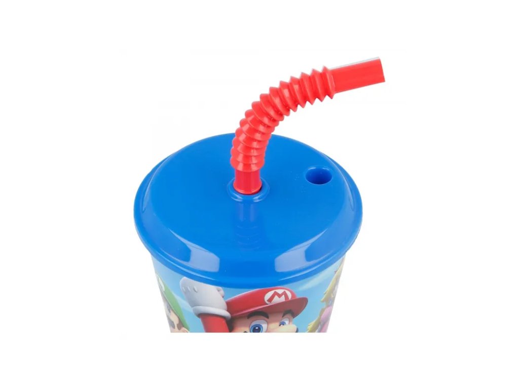 Plastový pohár s víkem a brčkem SUPER MARIO 430ml, 21430