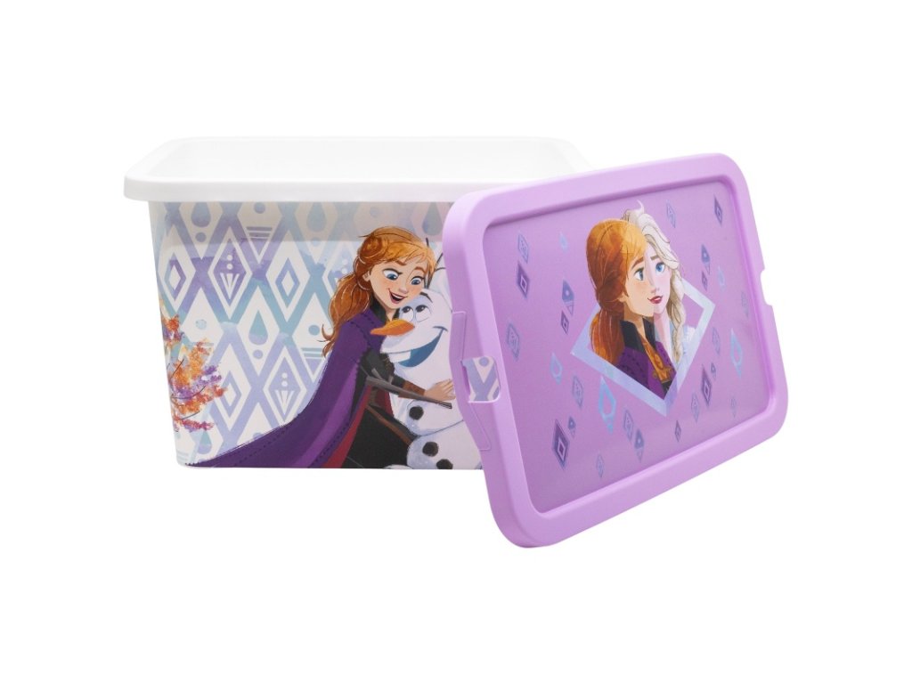 Praktický plastový úložný box s motivem Frozen je ideálním řešením pro ukládání hraček, stavebnic, knih, oblečení nebo drobností v dětském pokoji. Pomáhá udržovat pořádek a zároveň slouží jako pěkný dekorativní prvek.