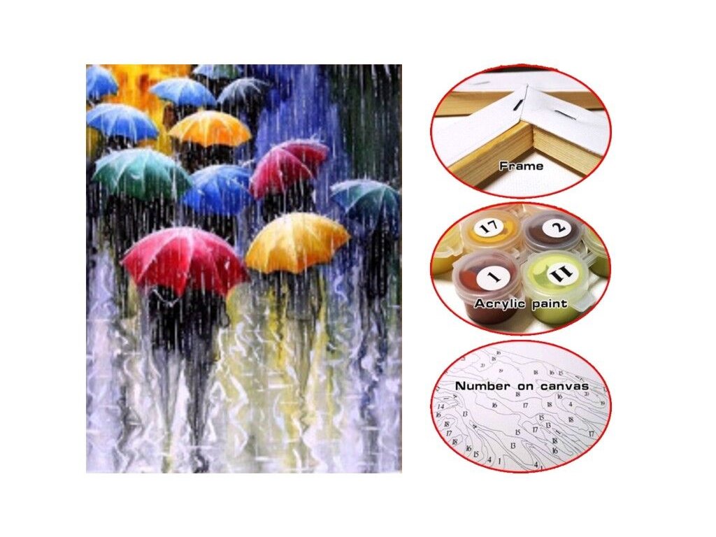 Plátno 30 x 40 cm maluj podle čísel - Deštníky