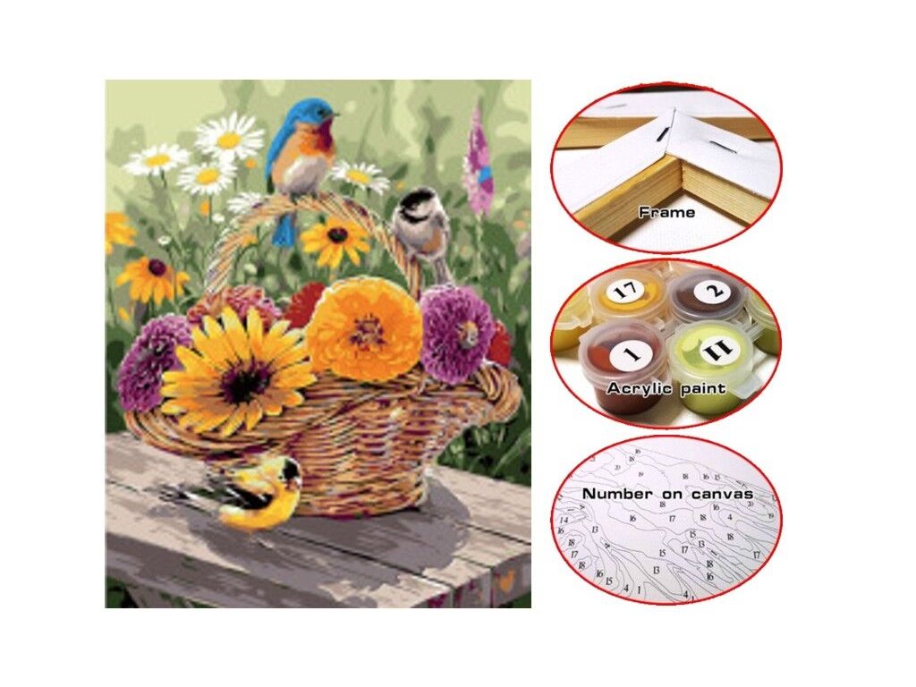 Malování podle čísel • Sada obsohuje bavlněné plátno s předkresleným motivem na dřevěném rámu velikosti 30x40cm, sadu 15 akrylových barev a 3 štětce.Doplňkové parametry