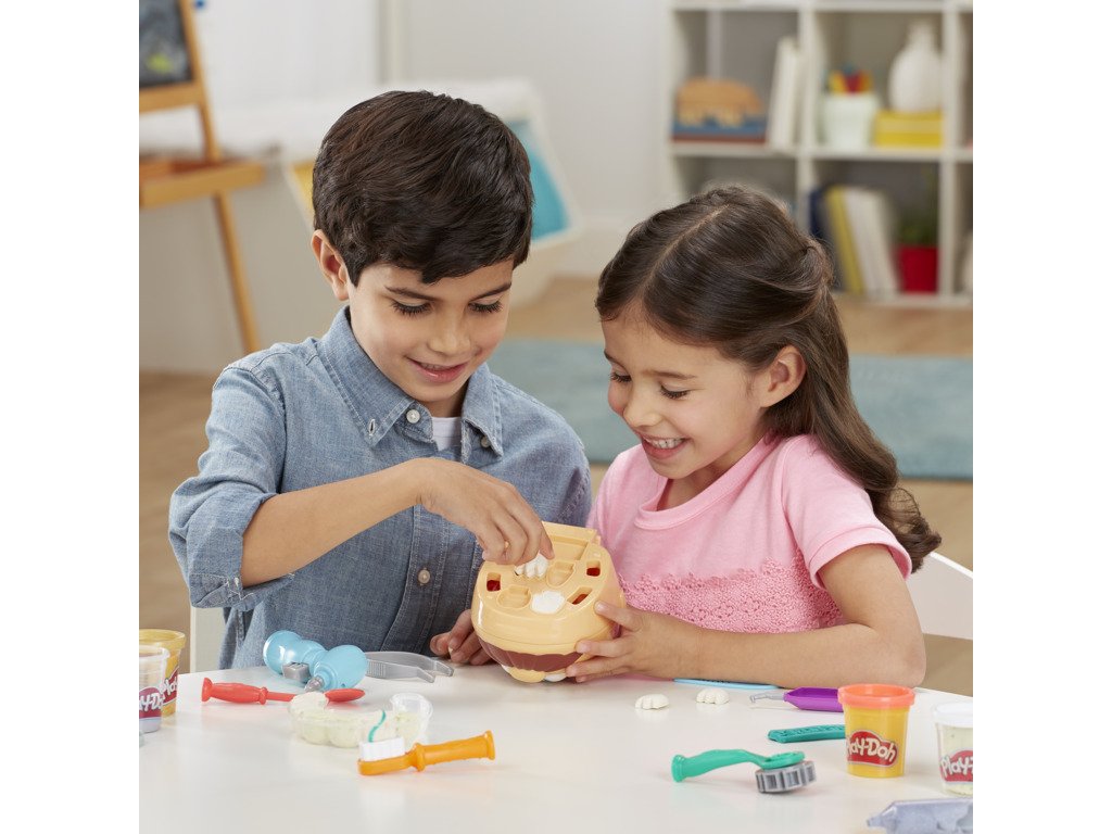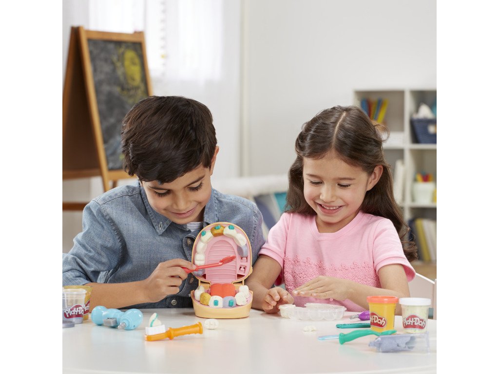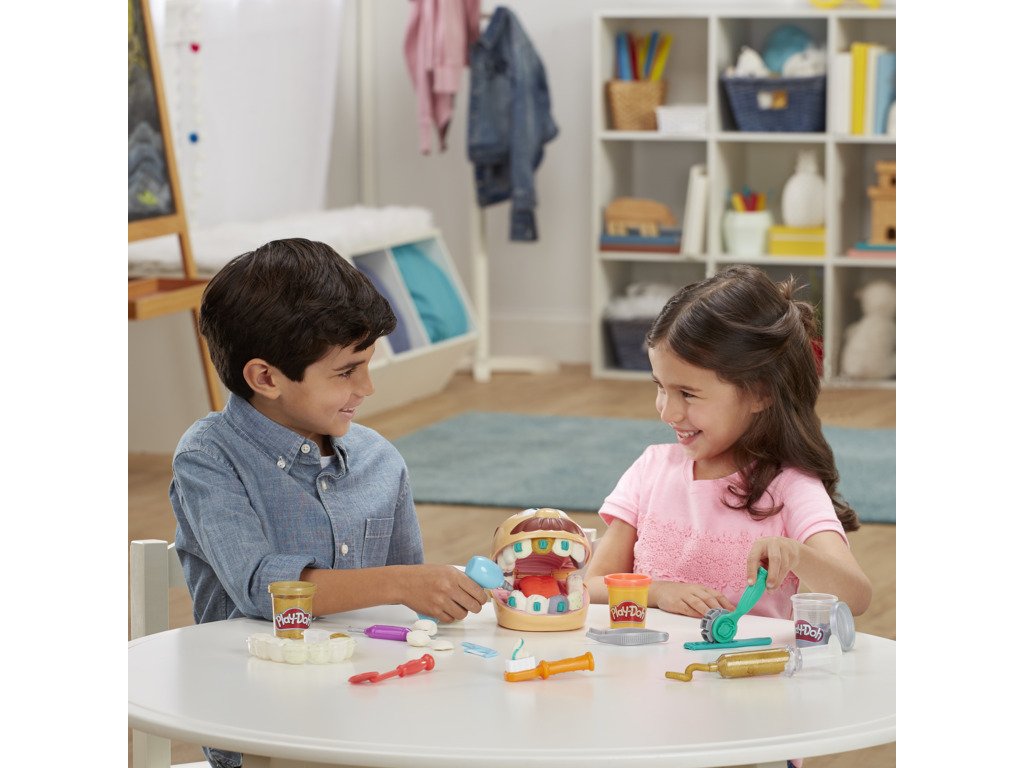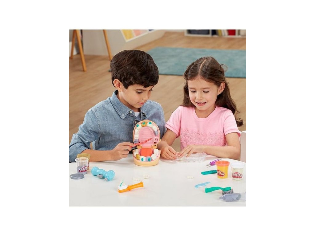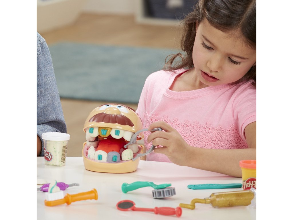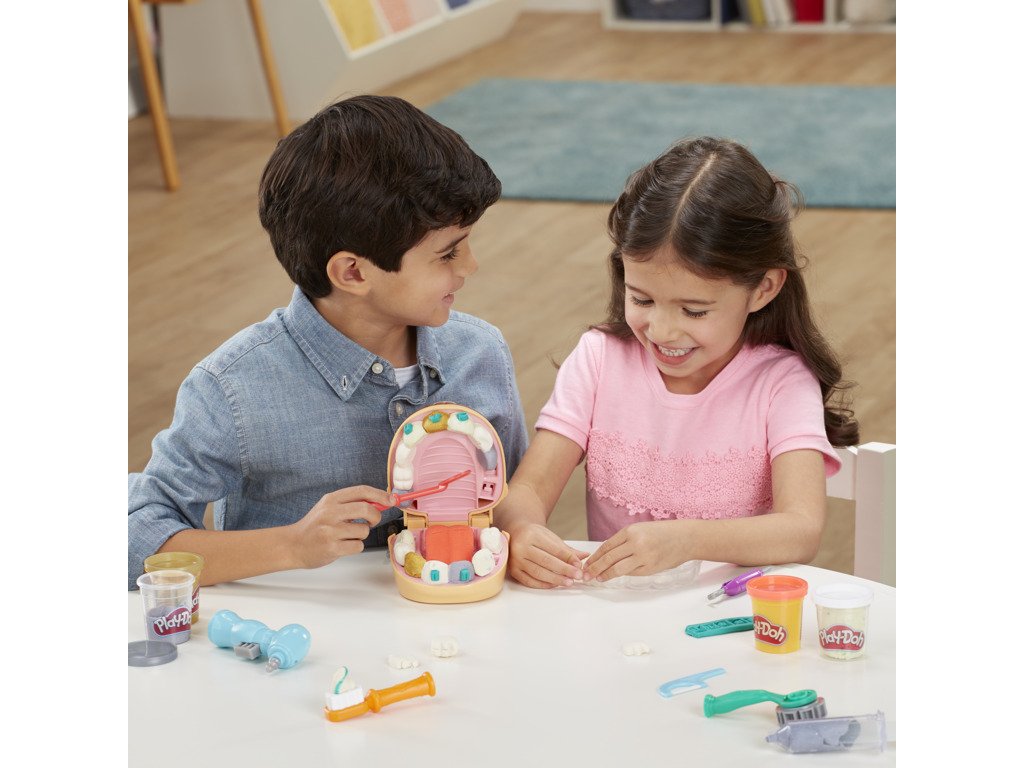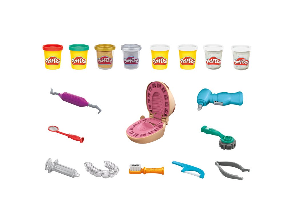 Doktor Drill 'n Fill je zpět a spolu s ním víc kazů než kdy předtím! Obsahuje zubní kazy v podobě konfet, zlatou a stříbrnou hmotu pro rovnátka a výplně a novou rotační vrtačku bez baterie. Zahrajte si na zubaře. Vytvořili jsme zcela novou formu na zuby a sada obsahuje všechny známé zubařské nástroje. Vyplázněte jazyk, vytlačte zubní pastu a nezapomeňte na čištění mezizubních prostor!Doplňkové parametry