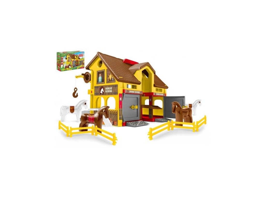 Play House - Ranč s koňmi plast + kůň 4ks v krabici 59x39x15cm
