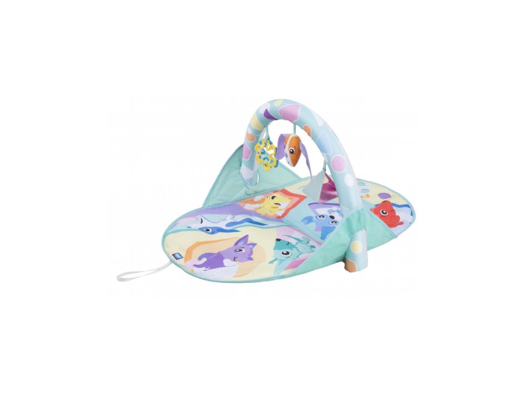 Cestovní deka s hrazdičkou Playgro - Cestovní hrací podložka se štěňátky je dostatečně kompaktní na to, abyste si ji mohli vzít kamkoli s sebou, a přesto je plná poutavých herních prvků. Pro zábavu ať jste kdekoli! Oboustranný měkký oblouk na hraní obsahuje barevné vzory tvarů pro vizuální stimulaci, zatímco tři aktivity hračky podněcují dítě k dosahování a uchopování. Jednoduše upravte polohu oblouku pro hru na bříšku, kde může dítě dále zkoumat zrcátko pro uvědomění si sebe sama, najít úlevu pro bolavé dásně s hrbolatými kousátky nebo trénovat uchopování a třepání s roztomilým chrastítkem ve tvaru štěňátka. Krásně ilustrovaná hrací podložka je zářivá, energická a zábavná a poskytuje ochranu mezi dítětem a podlahou, zatímco dítě procvičuje své hrubé motorické dovednosti. Díky praktickému skládacímu designu, rukojeti pro přenášení a bezpečně připevněným komponentům ji lze snadno uchopit a jít. Pro děti od narození. Hlavní přednosti: - Snadno nastavitelný hrací oblouk pro ležení a hraní nebo zábavu na bříšku!- 3 poutavé hračky pro aktivity zahrnují zrcátko, kousátko a roztomilé chrastítko ve tvaru štěněte.- Barevné ilustrace štěňátek stimulují vizuální smysly a představivost dítěte.- Pohodlná rukojeť pro přenášení a skládací design usnadňují přenášení a cestování!- Návod.Doplňkové parametry