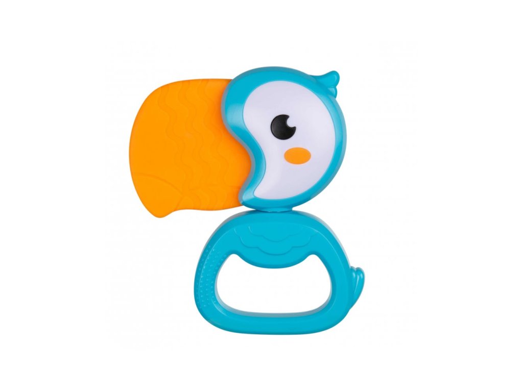 Hledáte hračku, která bude vaše miminko bavit, stimulovat jeho smysly a zároveň mu poskytne úlevu při prořezávání zoubků? Seznamte se s Kousacím chrastítkem Tukan od Playgro – veselým a funkčním kamarádem, který promění každý moment hry v radostné dobrodružství! Proč si kousátko Tukan zamilujete vy i vaše miminko?•Zvuková stimulace: Tukan vydává dva typy zvuků! Otáčením jeho tělíčka uslyšíte uspokojivé klapavé zvuky, zatímco zatřesení odhalí jemné chrastění vnitřních korálků. Tato rozmanitost zvuků skvěle stimuluje sluchové vnímání vašeho miminka.•Ideální pro malé ručičky: Díky své nízké hmotnosti a ergonomickému tvaru je tukan snadno uchopitelný i pro ty nejmenší ručičky. Podporuje tak rozvoj jemné motoriky a koordinace.•Úleva pro bolavé dásně: Měkký zobák tukana slouží jako kousátko, které je perfektní pro zklidnění bolavých a svědících dásní během prořezávání zoubků.•Bezpečnost především: Kousátko je navrženo bez použití barev, což zajišťuje maximální bezpečnost pro vaše miminko a klid pro vás, rodiče.•Vizuální přitažlivost: Veselý design a jasné barvy tukana upoutají pozornost miminka a podporují jeho zrakové vnímání. Kousací chrastítko Tukan od Playgro je ideální společník pro každodenní hru, který kombinuje zábavu, smyslovou stimulaci a praktickou úlevu. Nechte své miminko objevovat radost z otáčení, třesení a kousání!Doplňkové parametry