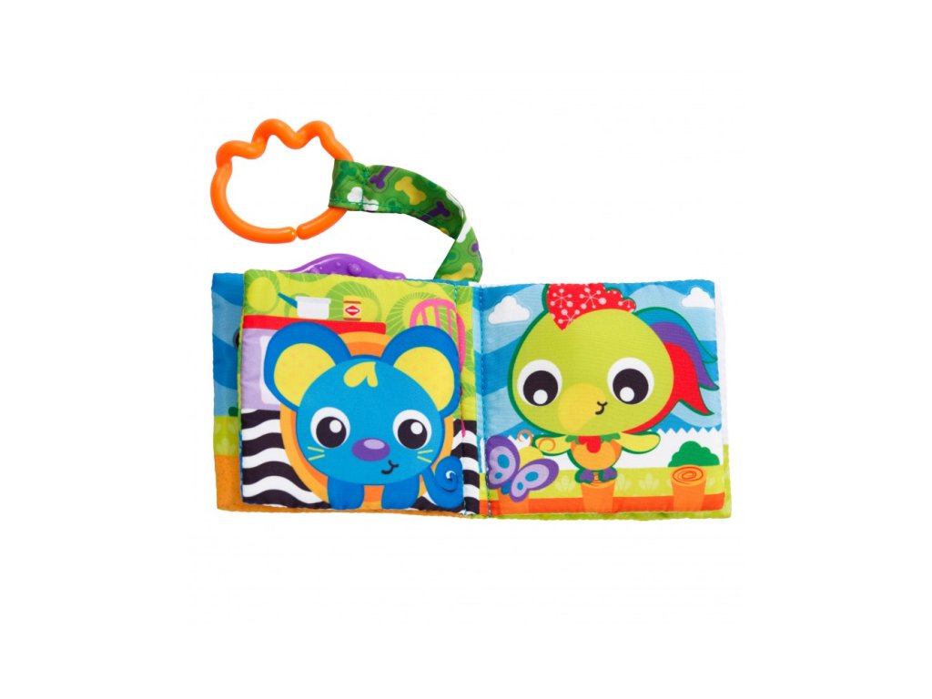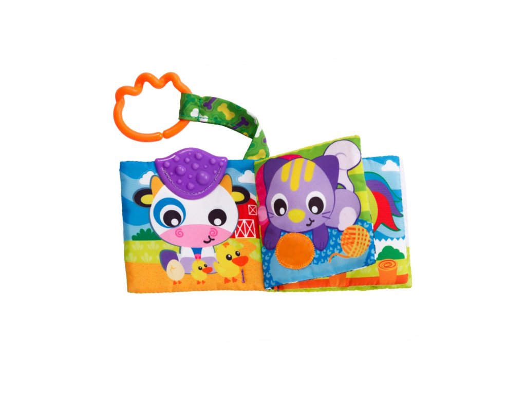 Klasická Playgro textilní knížka. Na stránkách jsou barevné obrázky a vzory, které stimulují zrak. Šustící stránky a různé druhy materiálů vybízejí děťátko ke zkoumání. Naše knížka obsahuje různé druhy materiálů stimulující hmat dítěte a klip pro snadné připnutí. Součástí knížky je i kousátko, které uleví balým dásním. Hračky Playgro jsou testovány, bez ohledu na kategorii, pro kterou jsou určeny, dle nejpřísnějších norem. Čištění: Povrch pouze ručně omývejte čistou vodou. Neponořujte do vody a neperte.Doplňkové parametry