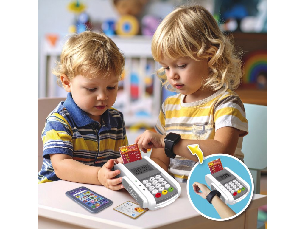 PLEJO Platební Terminál: Zaplať jako dospělák Představ si, že máš svůj vlastní obchod, a zákazníci k tobě chodí nakupovat. S PLEJO Platebním Terminálem si můžeš hrát na opravdového prodavače a přijímat peníze za zboží. Ale víš co? Tenhle terminál je úplně kouzelný. Co všechno PLEJO terminál umí? Plať kartičkou: Jasně, že k němu patří kartičky, jako ty, co mají mamka s taťkou! Jen je zasuneš nebo přiložíš a zaplaceno. Plať mobilem: Víš, že dneska lidi platí i mobilem? Prostě přiloží telefon k terminálu a píp! – peníze jsou pryč a hurá, můžeš dát zákazníkovi zboží. Plať hodinkami: A co třeba hodinky? I s těmi se dá platit! Když je někdo přiloží k terminálu, taky to pípne a je hotovo. Proč je PLEJO terminál super hračka? Jako opravdový: Vypadá a funguje skoro jako ten dospělácký, takže si s ním můžeš hrát na opravdový obchod. Pípá: To pípnutí je to nejlepší! Víš, že platba proběhla, a je to taková legrace. Spousta zábavy: Můžeš si hrát s kamarády na obchod, na kavárnu, na cokoliv tě napadne! Tak co, už se těšíš, až budeš mít svůj vlastní PLEJO Platební Terminál a budeš přijímat peníze jako profík?Doplňkové parametry